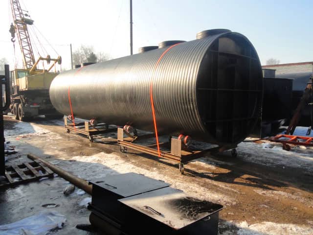 • Корпус изготовлен из низколегированной стали с многослойным антикоррозийным покрытием. Возможно изготовление из спирально-витого ПНД или стеклопластика.